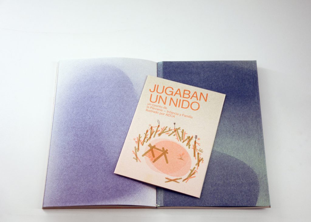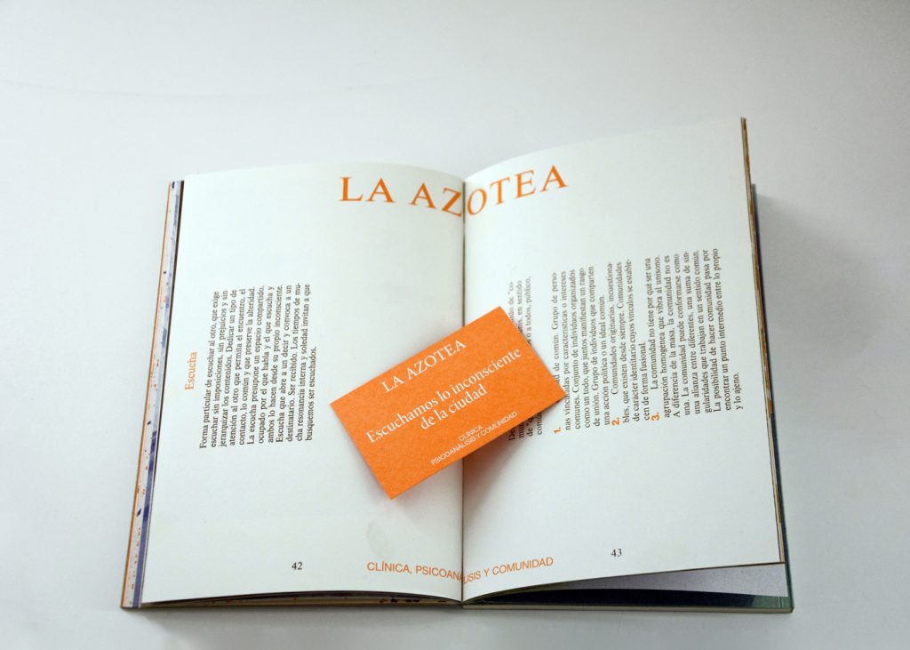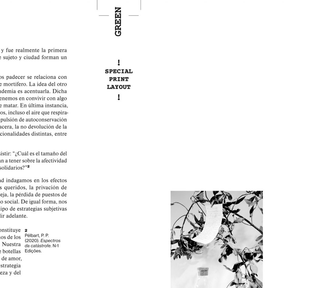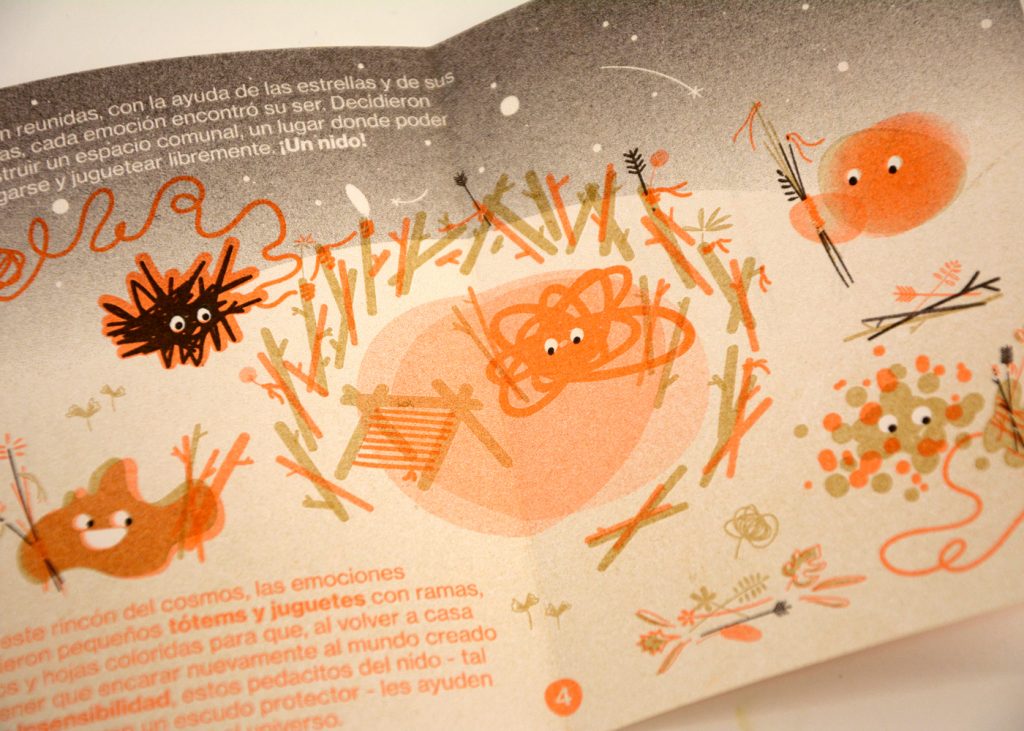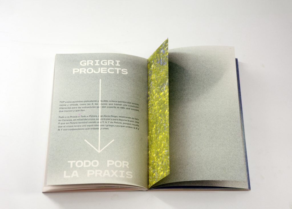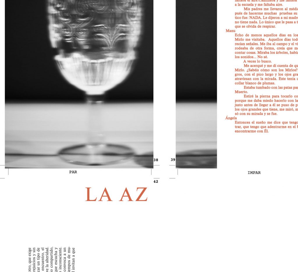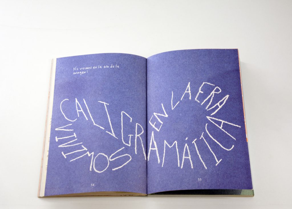 Staying true to the concept of this cooperative exhibition, part of this editorial challenge was to develop a publication that truly engaged with the artist’s and participant groups in a creative and collaborative way. We decided to do the whole book in a printing technique that allowed for hands on plastic exploration while also making it possible to have a small print run. Together with the publishing, printing and bookbinding studio Cabeza de Chorlito, in Madrid, the book was entirely developed and manually assembled through risograph printing process, by combining 4 direct colours (Blue, Green, Orange and Black). This result is a truly unique book, with 60 pages of original visual works, as well as 80 pages of essays and documentation of the whole exhibition programme.