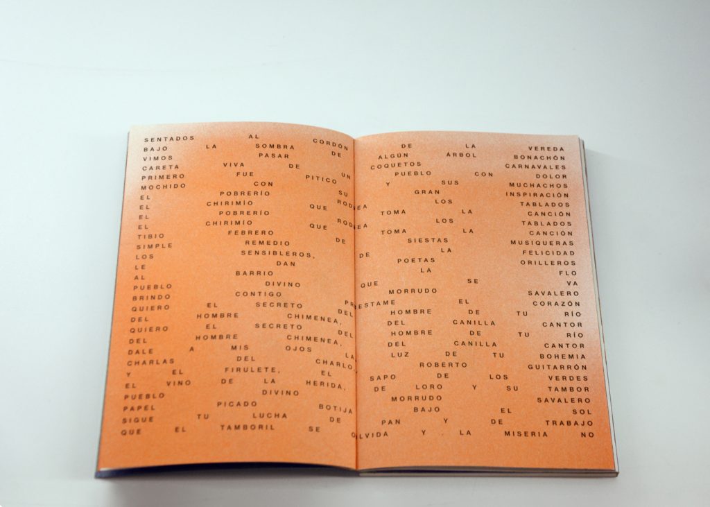 Softcover with handmade Z binding (accordion). 12.5×19.5cm. Side A 60 pages, side B 80 pages. Limited edition of 300. Entirely printed in Risograph by Cabeza de in Madrid in Madrid, 2021.